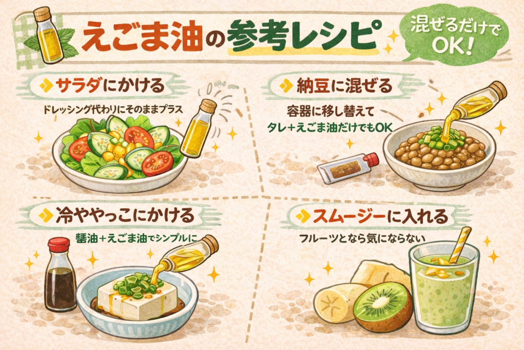 実際にやってみて感じたことをまとめてみました。▶えごま油の効果はこちらから