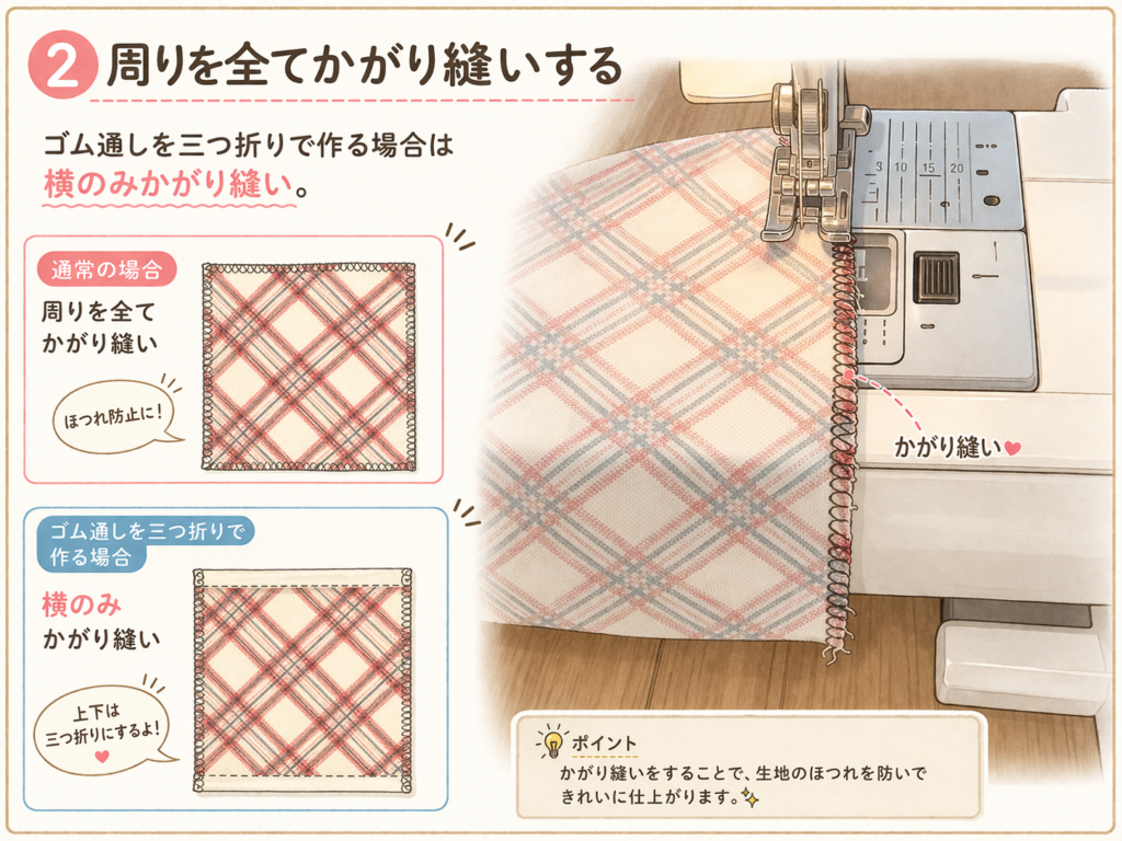 三つ折りでゴム通しを作る場合は