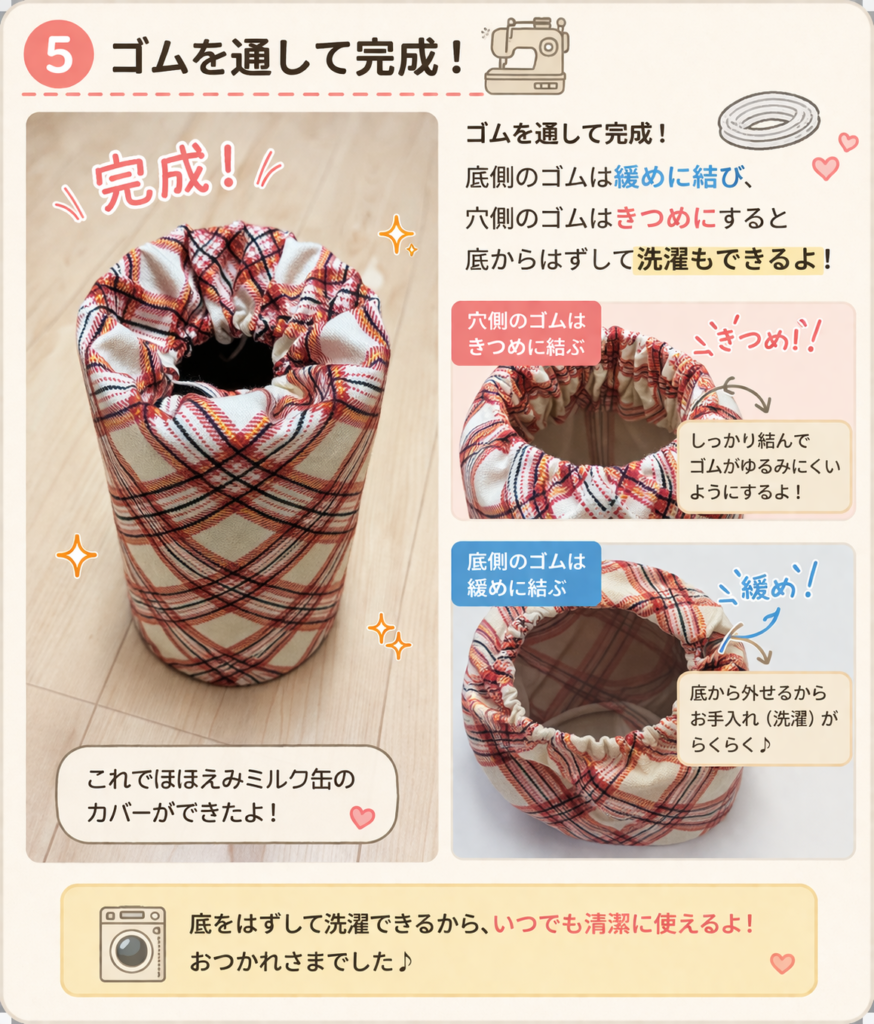 ミルク缶を使った「ぽっとん落とし」の作り方です。