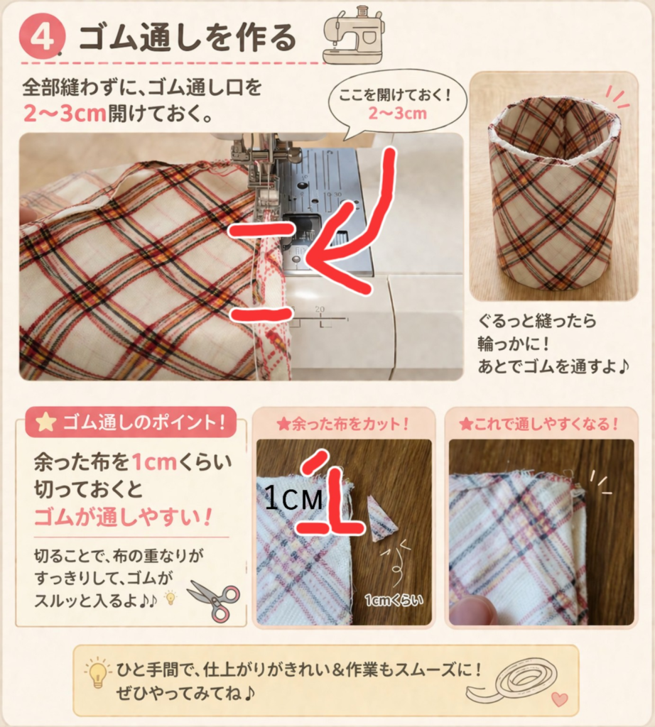 ゴムが通しやすくなります。